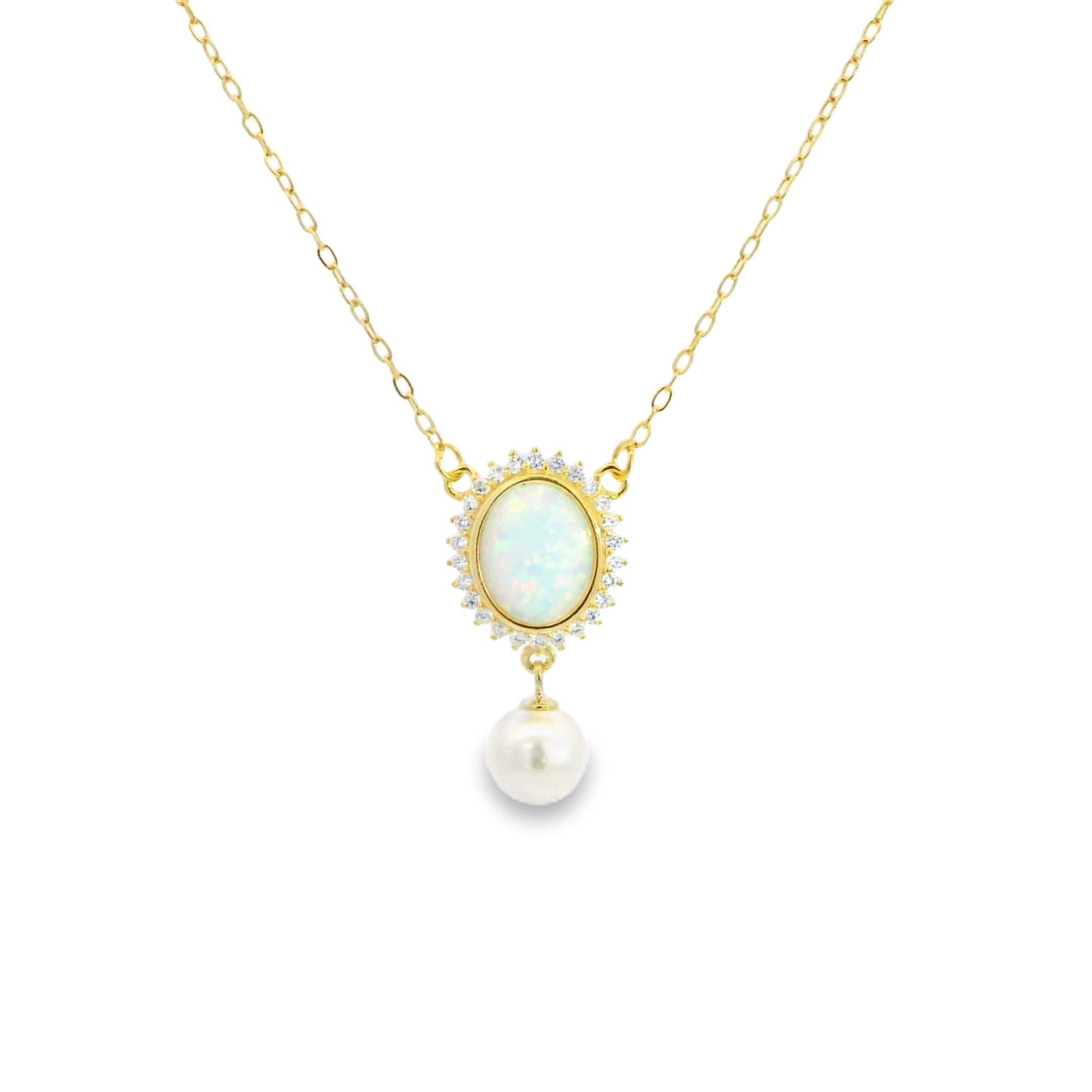 Opal Medallion Pearl Drop Gold Plated Necklace