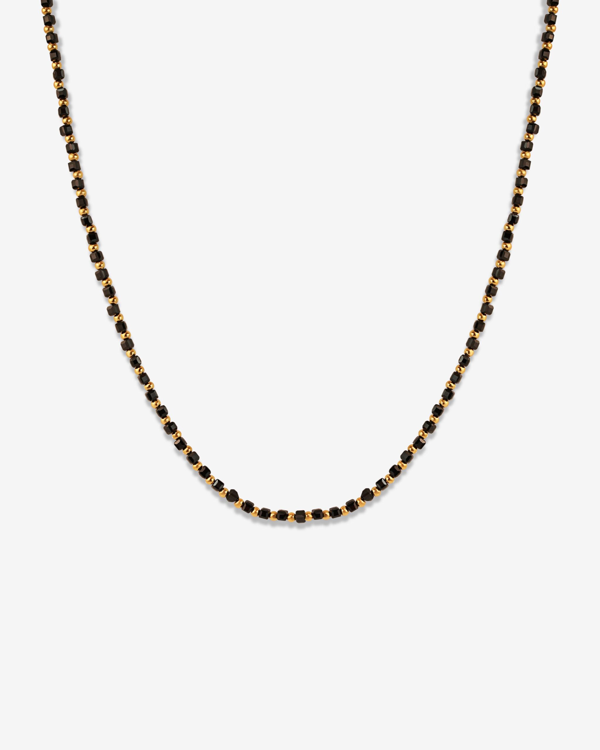Thin Black Beads & 18k Gold Plated Necklace