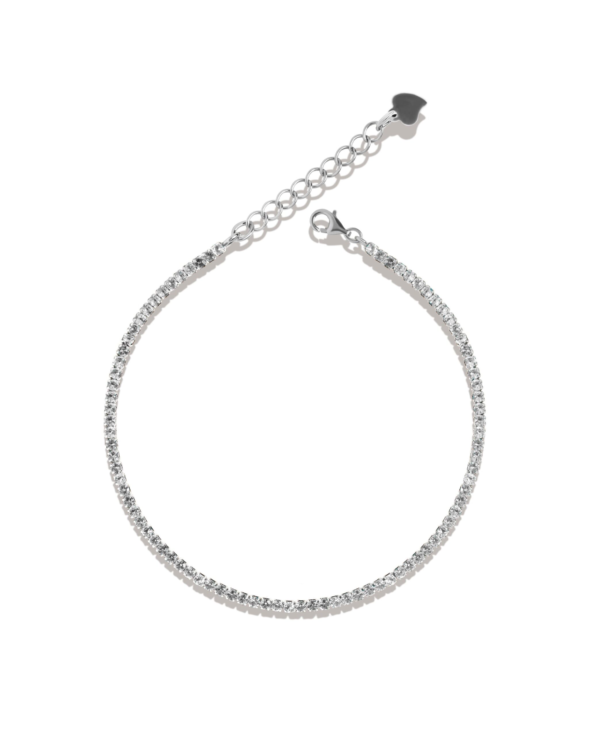 A tennis chain is your jewelry boxes must have item! This eye catching classic is made from pure 925 sterling silver and can be worn on its own or layered with other pieces of jewelry.